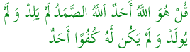 你说:他是真主,是独一的主,真主是万物所仰赖的,他没有生产,也没有被生产,没有任何物可以做他的匹敌。 |