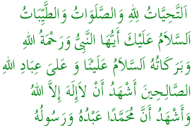 语言、身体、钱财的功课全归于真主。圣人啊!愿真主赐你平安、慈惠和吉庆。也赐于我们和一切善良的仆民平安、吉庆。我作证:除真主之外,没有应受崇拜者;我作证:穆罕默德是真主的仆民和使者。 |
