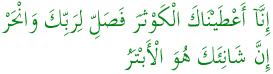 我确已赐你多福,故你应当为你的主而礼拜,并宰牺牲。怨恨你者,确是绝后的。 |