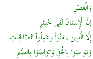 以时光盟誓,一切人确是在亏折之中,惟信道而且行善,并以真理相劝,以坚忍相勉的人则不然。 |