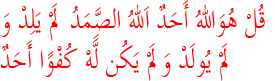 他是真主,是独一的主;真主是万物所仰赖的;他没有生育,也没有被生育;没有任何物可以做他的匹敌。。 |